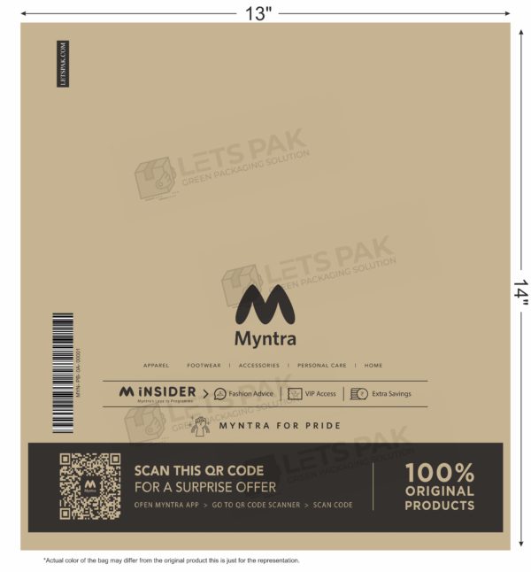 Minimum quantity for “Myntra branded Paperbag Size A (17 x 21Â No Flap)” is 500pcs.